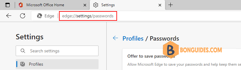 Alternatively, you can open Passwords settings page by type edge://settings/passwords into the Edge’s address bar.